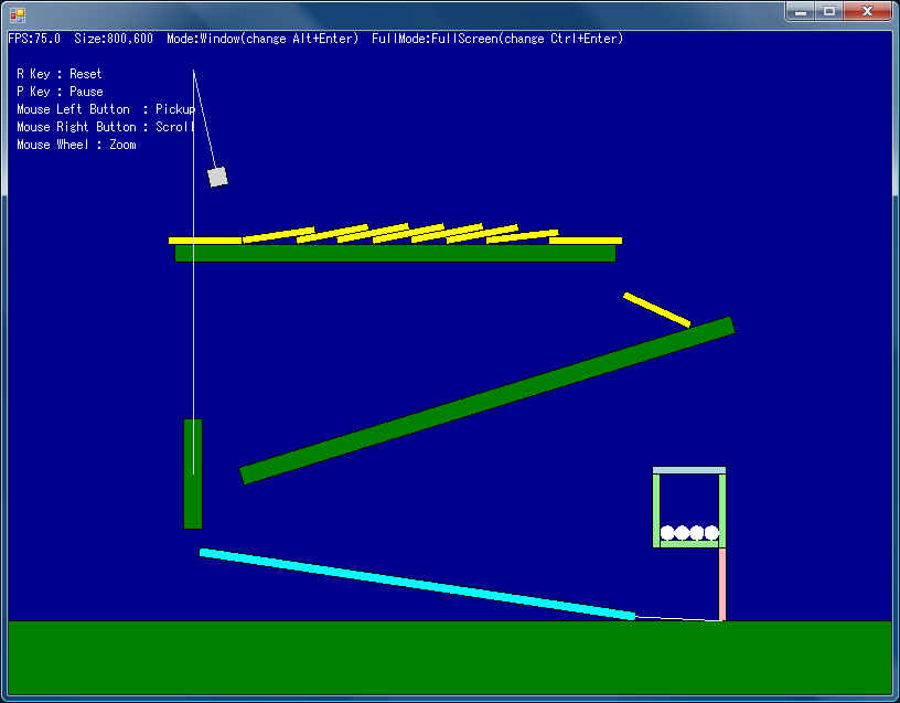 Pキー押下でポーズ/ポーズ解除、Rキーでオブジェクトのリセットを行えます。