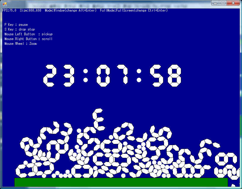 キー操作はRキーでのリセットはなく、Sキーでブロックの生成(落下)を停止/再開させることができます。