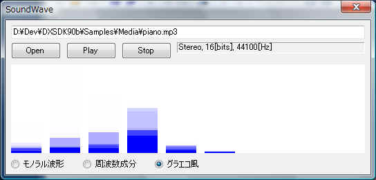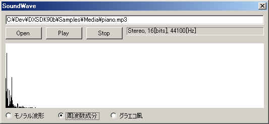 音声ファイルを再生し、再生位置の波形をリアルタイムで表示します。