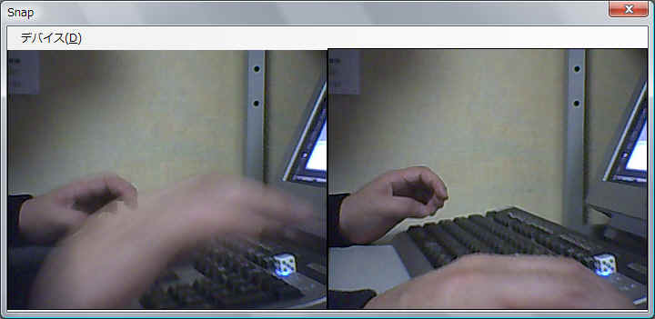 「Snap」と同様に、左側の映像をクリックすると静止画を取得し右側に表示します。
