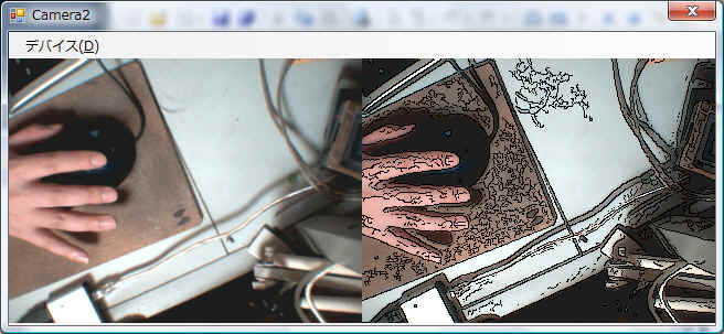 元画像と簡単な画像処理を行った映像をフォーム内に並べて表示します。