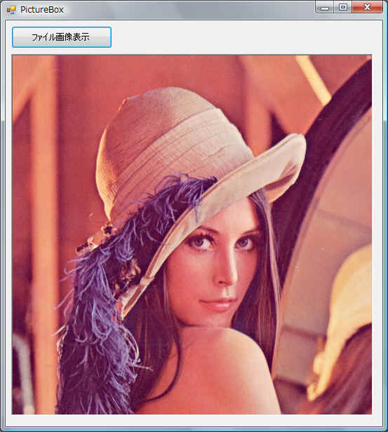 静止画ファイルを読み込み、PictureBox内に表示するサンプルです。
