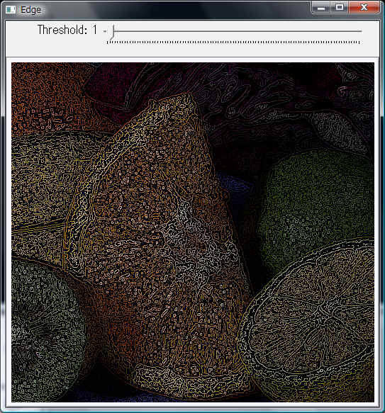 静止画ファイルを読み込み、cvCannyにて縁(輪郭)を抽出するサンプルです。